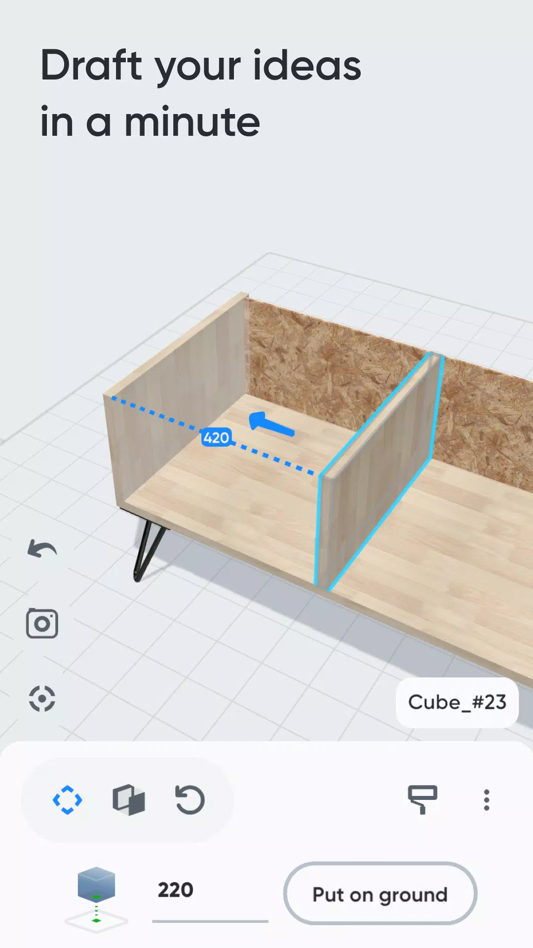 Preview designs in your actual space using smartphone AR, then refine proportions in real time