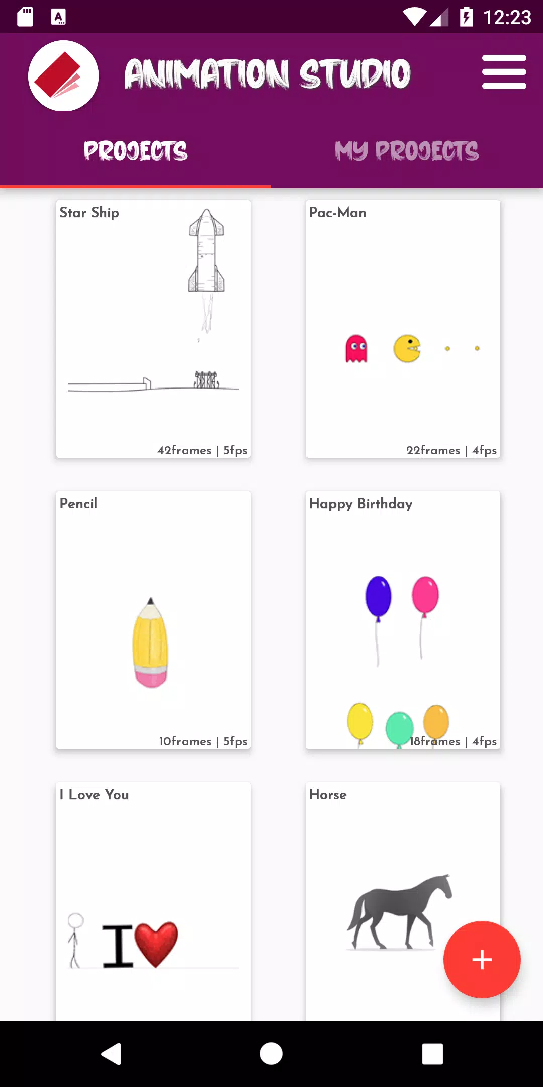 Animation Studio vous aide à créer des animations simples et basiques ainsi que des GIFs en utilisant un stylet ou votre doigt.