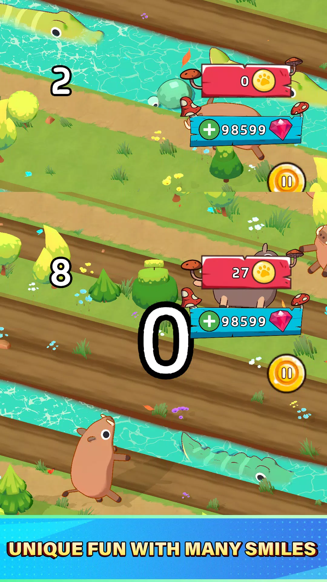 Jungle Crossing é o arcade hopper infinito original que deu início a tudo. Desbloqueie personagens únicos e mergulhe na jogabilidade divertida.